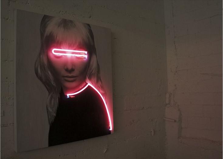 Javier Martín, es conocido  por tapar siempre los ojos de sus personajes y de sus modelos. En la obra que os presento para poder debatir durante unos días conocida con el título «Blindness Light», los elementos tecnológicos utilizados parece que se utilizan precisamente para destacar y hacer que nos fijemos en los ojos de la modelo.